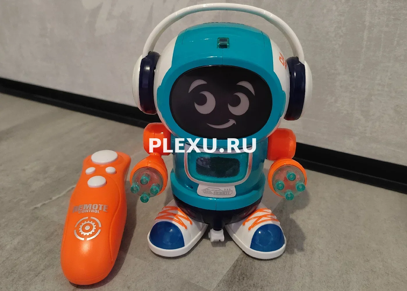 Музыкальный робот на пульте управления, ездит в разные стороны, светится.