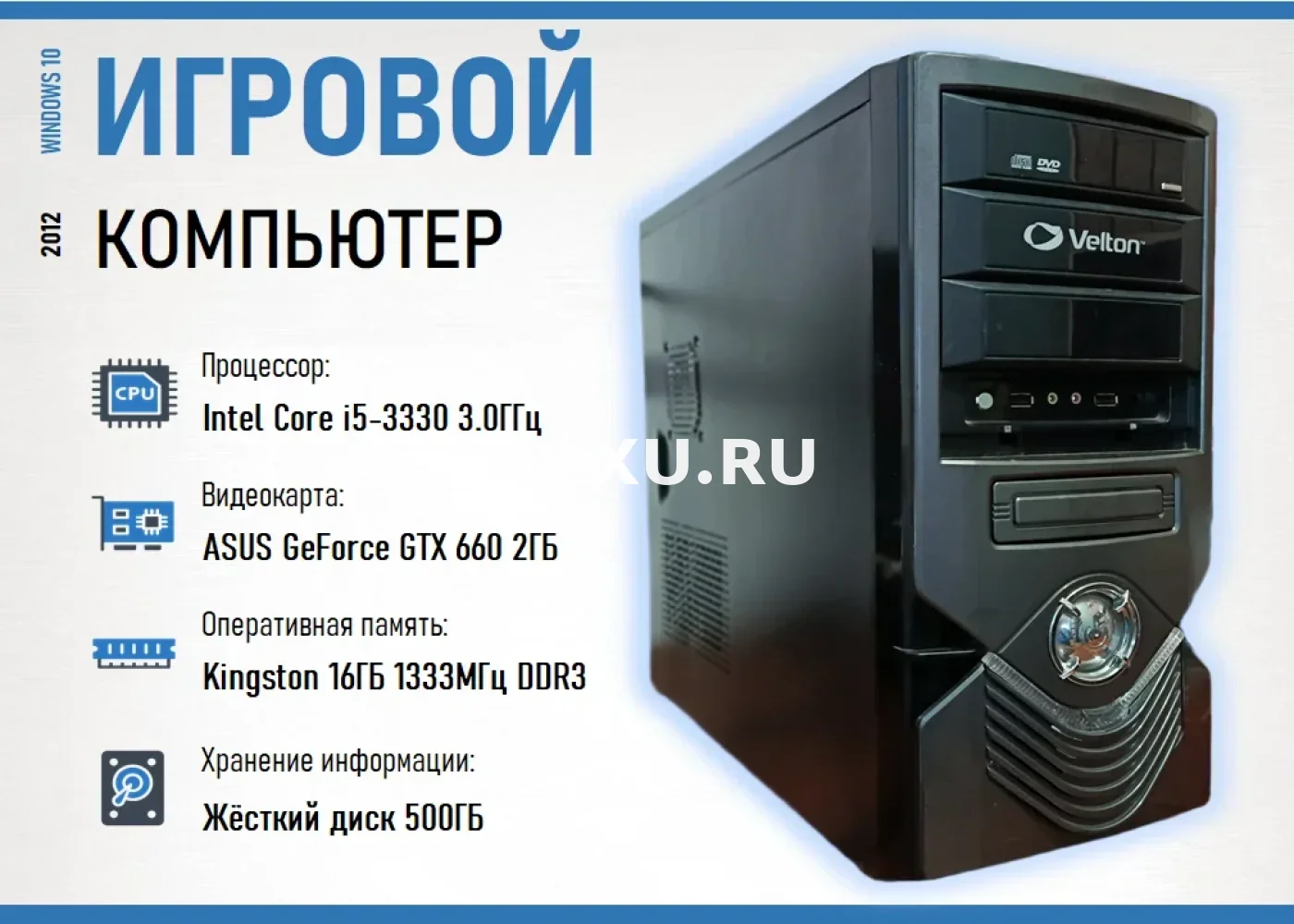 К продаже компьютер (системный блок - 2012). Отлично подойдёт для компьютерных игр прошлых лет (совместимость уточняйте). Можно использовать под рабочие задачи, офис, учёбу.