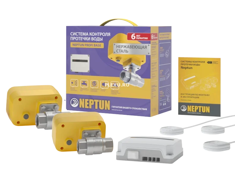 Система среднего ценового сегмента с оптимальной комплектацией. В состав входят российские краны из нержавеющей стали марки SS304 с электроприводом Neptun PROFI и российские компоненты (модуль и датчики).