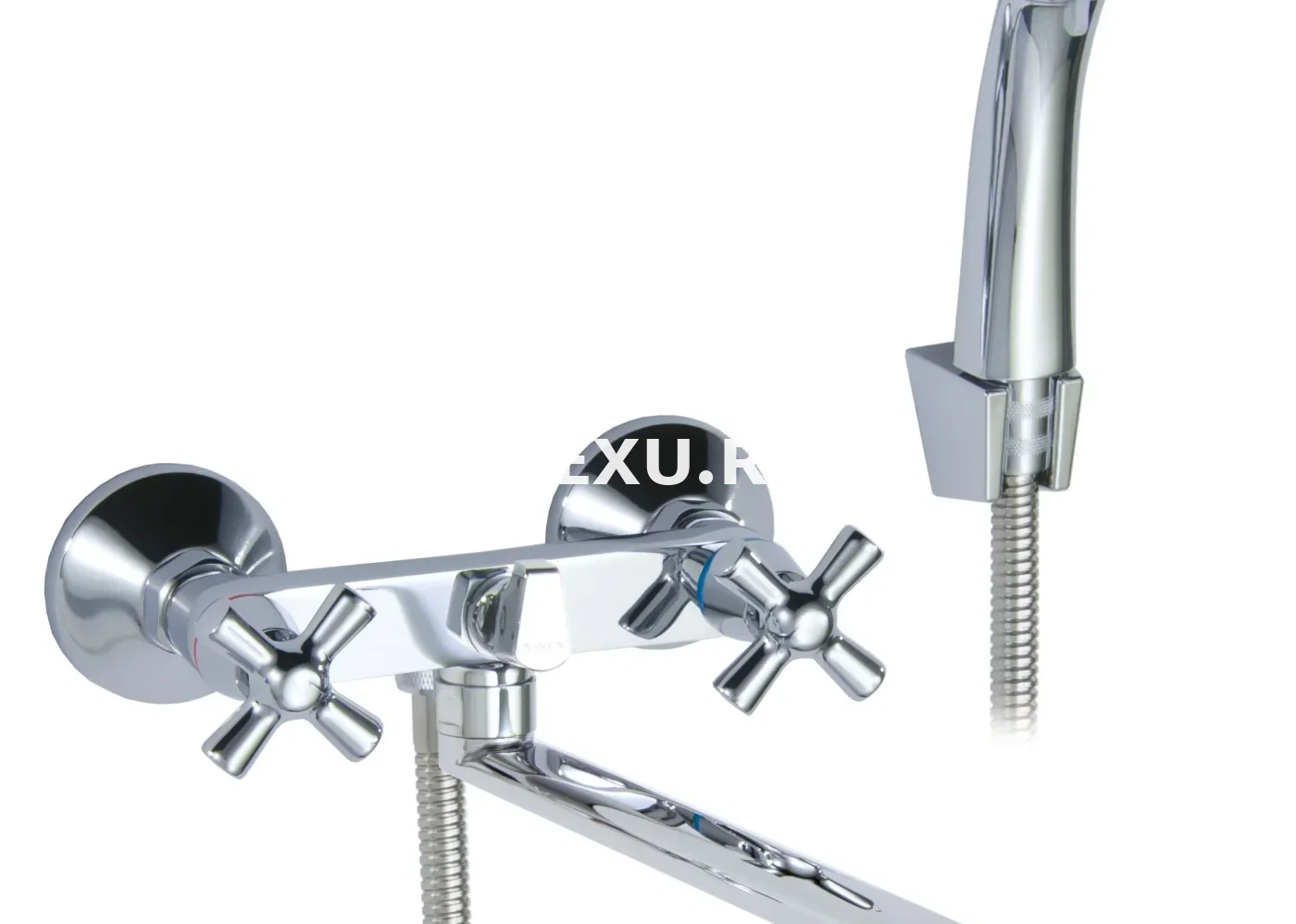 Цельнолитые металлические маховики, изолированные термовставками в местах крепления и соприкосновения маховика с корпусом смесителя, для защиты от ожога.